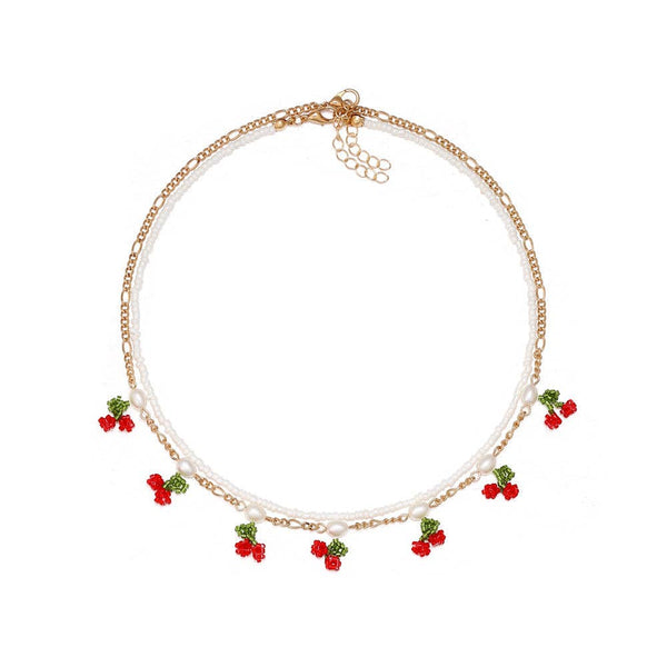 Hand-woven Cherry-shaped Double-layer Choker Necklace