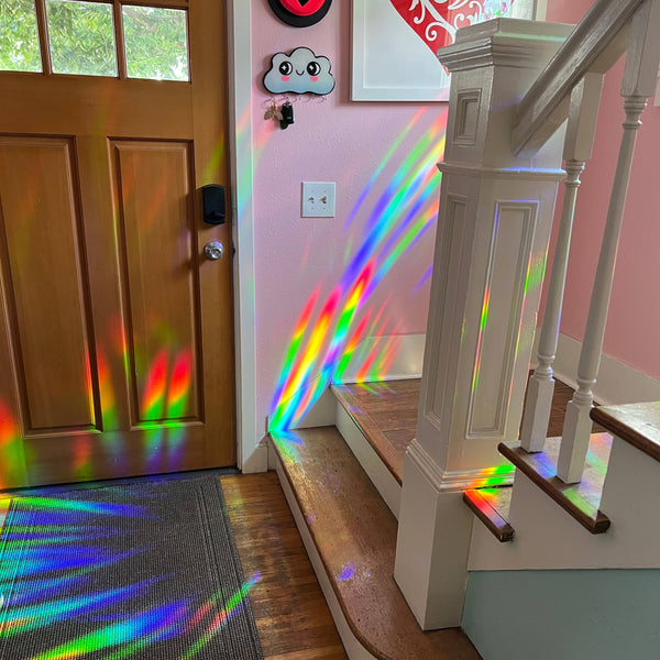Instructions: Place on inside of window, enjoy rainbows! Most recommended for glass surfaces.