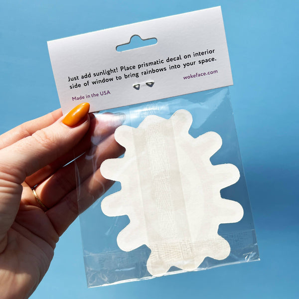 Wokeface Rainbow Maker Sun Catcher Decal is made of a specialized light refracting vinyl. When sunlight shines through it, vivid rainbows appear!